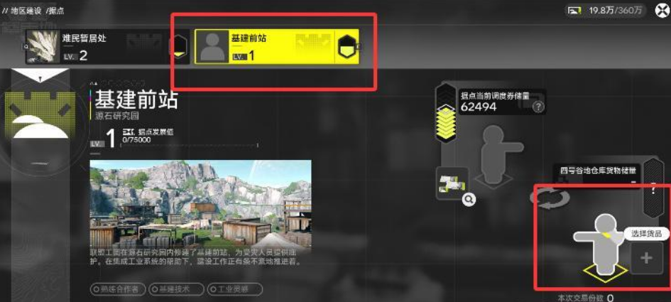 任务起点在于进入据点管理界面。在主地图视图中,左上角设有“地区建设”功能按钮,点击后即可跳转至据点管理面板。此处可查看当前所有据点状态,其中“基建前站”为本次任务核心对象——若其等级为1级,则需升至2级方可达成任务条件。