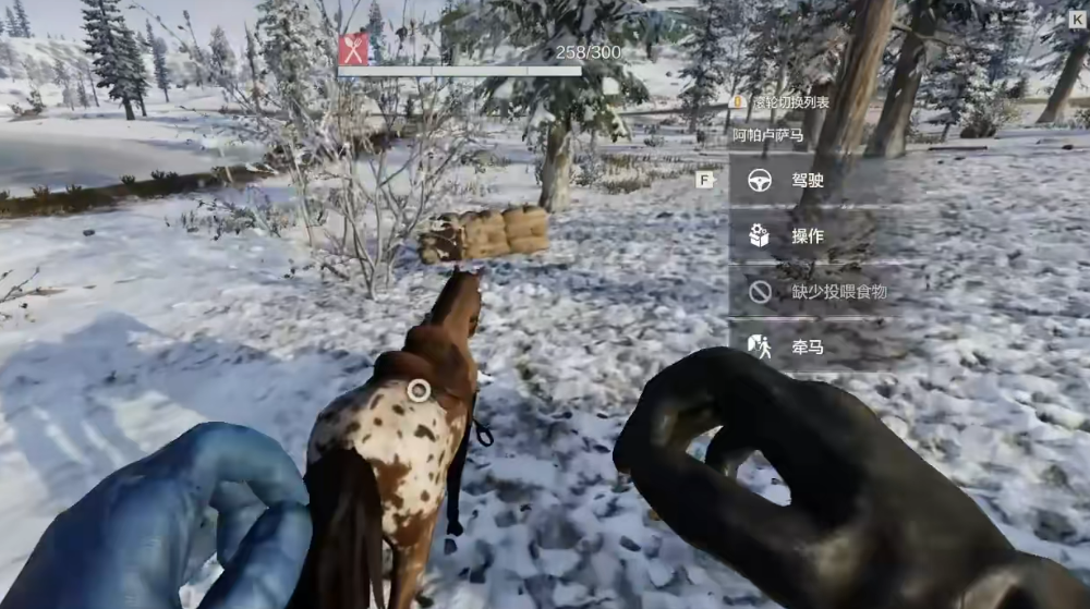 武器配置遵循功能分层原则:弓箭负责超视距骚扰与牵制,钉枪专注中距高伤输出,手枪承担近距决胜任务;铁斧作为轻量级近战补充,不额外增加负重负担。弹药需在每场战斗后通过战利品搜刮及时补足;坐骑健康状态须实时监控,受伤后立即投喂肉类恢复体力。