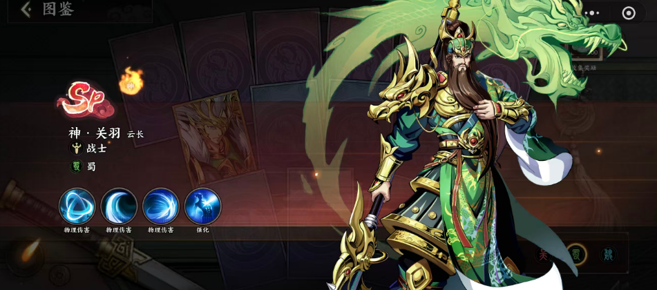 在《群英打三国》中,武将图鉴并非初始全部解锁,而是采用“获得即解锁”机制——玩家需先获取对应武将,其专属图鉴与技能详情才会同步开放。这一设定意味着,角色强度的直观判断需依托已拥有的武将信息。当前版本中,具备SP品质定位的武将普遍代表游戏内顶级战力,其技能机制、数值表现与实战适配性均显著高于常规品质角色。