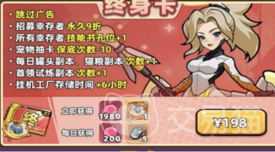 终身卡采用一次性付费模式,激活后所有对应权益永久生效。首要优化点在于交互流畅性:全程免广告干扰,系统弹出广告时可即时跳过,避免操作中断。其次聚焦资源循环效率——角色招募享有永久9折优惠,显著降低高稀有度行程者获取门槛;同时,基础资源产出节奏、建造与升级等待时间等关键成长路径均获得持续增益,为中后期稳定发育提供底层支持。