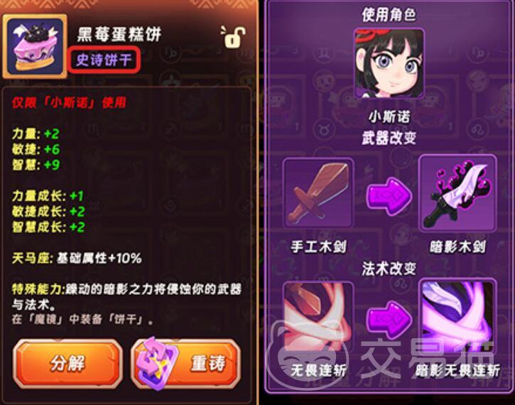 游戏中饼干种类丰富,涵盖猫饼、黑莓蛋糕饼等外观各异的类型。所有饼干均按品质划分为五个等级,基础款提供单一属性加成;史诗级及以上则额外附带专属特效,例如暴击率提升、技能冷却缩减或元素抗性增强等。不同品质间的数值增幅存在明显梯度,需结合当前阵容需求审慎投入。