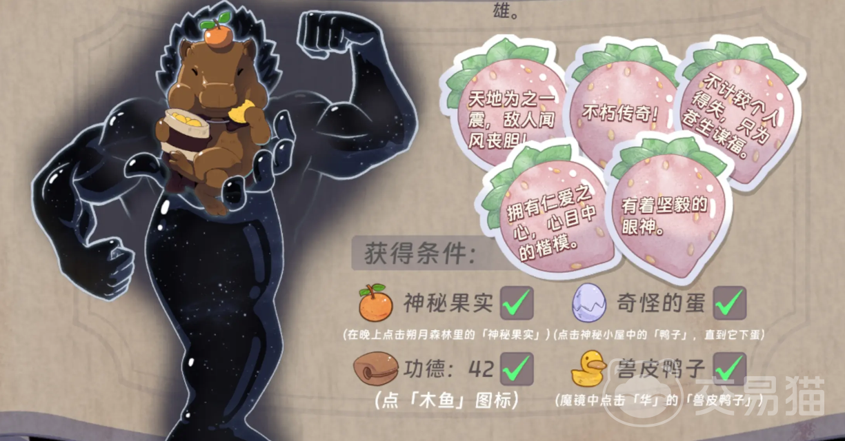 第二位推荐角色是“卡皮巴拉”(别名天才水豚)。其天赋偏向法术增益体系,初始法强成长曲线优异。培养关键在于宝物迭代效率:需尽快替换初期过渡宝物,换装高阶专属道具。推荐占卜组合为“黑色修饰念珠”或“三色羽毛”,二者均能强化其法术连锁效果与总攻击力转化率。在传奇宝物池中,卡皮巴拉对具备法术穿透、暴击法伤加成类效果的宝物响应尤为显著,务必确保法术强化作为核心培养方向贯穿全程。