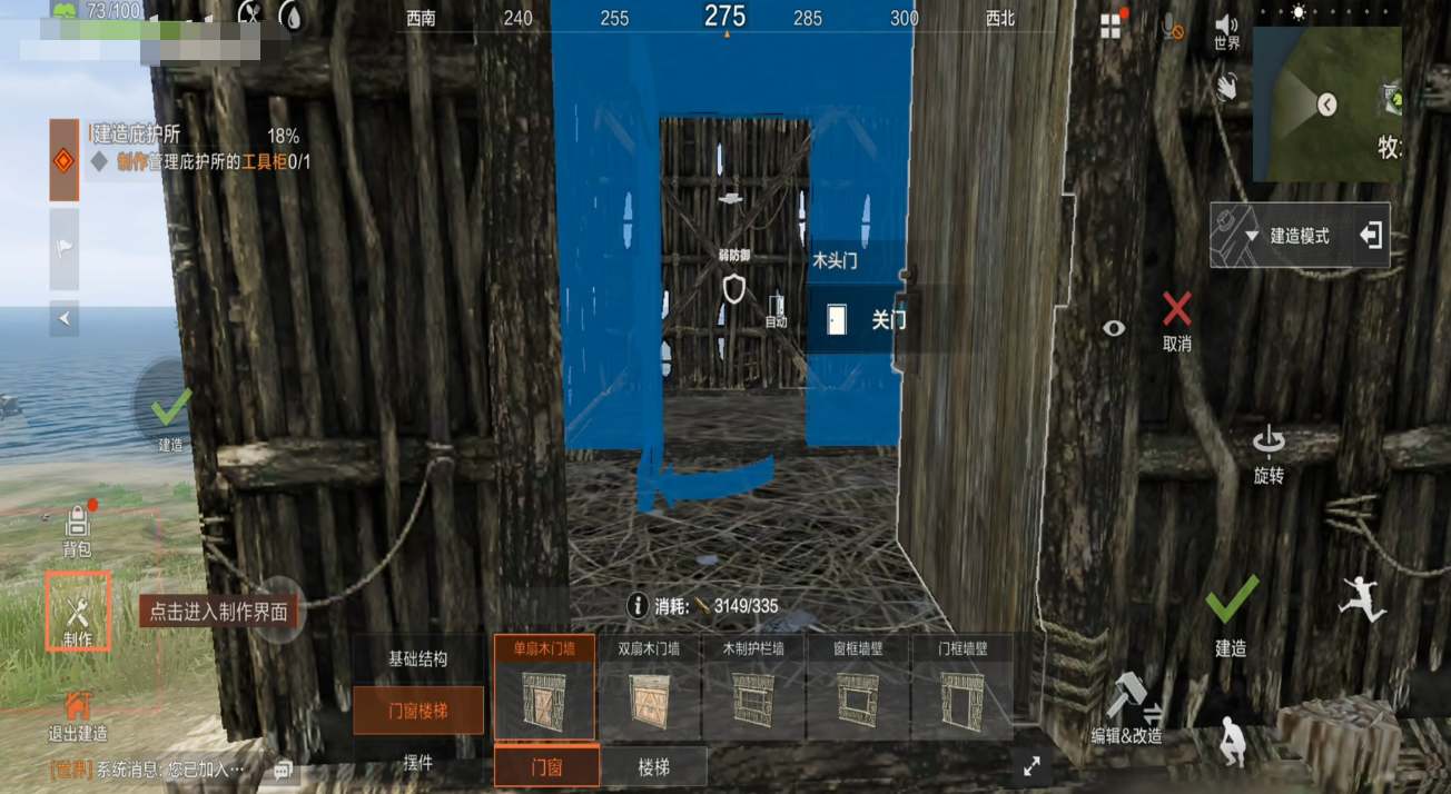 角色状态系统高度拟真,实时显示饥饿值、水分、体温、疲劳度等生理指标,玩家需依据身体反馈动态调整行动节奏,例如优先寻找水源、搭建庇护所或制作火源。环境交互具备物理真实性:建筑结构必须符合力学逻辑,墙体倾斜角度过大或屋顶承重失衡时,在强风暴雨天气下存在坍塌风险;选址策略直接影响长期生存效率,不同区域的野兽密度、资源丰度、气候稳定性差异显著,考验玩家对地形与生态的综合判断能力。