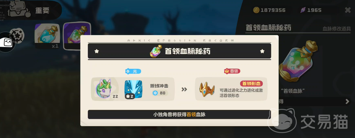 获取该精灵的前提,是先拥有一只白金独角兽。该宠需通过驯化系统加入队伍,并成功完成驯化流程,方可作为可出战单位使用。但仅持有白金独角兽尚不足够——必须满足两项核心条件:习得“进化之力”技能,且携带“首领血脉”特性,二者缺一不可,否则无法触发最终进化。