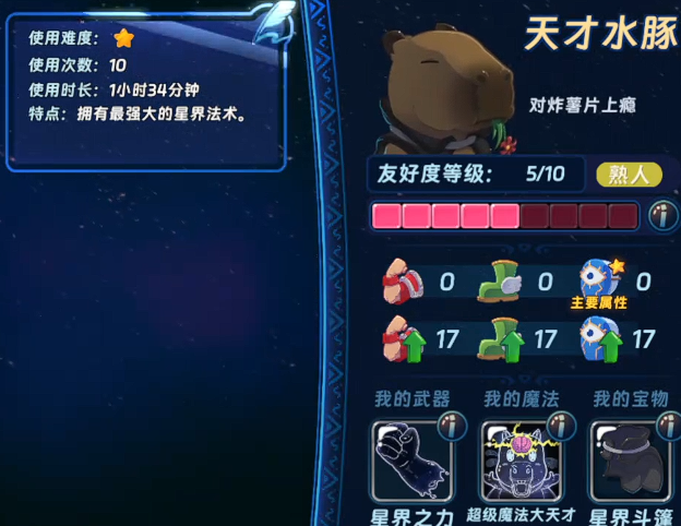 在《汉克旅店》的冒险进程中,单靠主角魔法师的基础输出往往难以应对中后期密集的敌群。此时,合理搭配功能性宠物成为提升清图效率与生存能力的关键。卡比巴拉——这位游戏中免费获取的初始伙伴,以“天才水豚”为名,凭借独特的星界魔法机制,成为新手阶段极具性价比的选择。