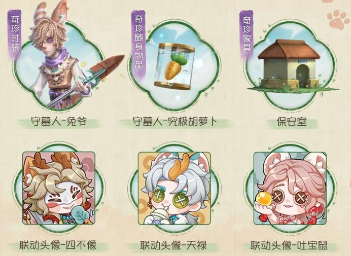 特殊宝物具备双重用途:既可兑换金币,亦可赠予联动角色,触发专属剧情事件,呈现四不像、天禄、兔爷、吐宝鼠等神兽角色间的趣味互动日常。普通宝物则统一售出为金币,用于参与联动专属抽奖——奖池涵盖“守墓人-兔爷”奇珍时装、“守墓人-究极胡萝卜”奇珍随身物品、保安室主题家具、个人动作、头像框、线索以及角色碎片等多元道具。