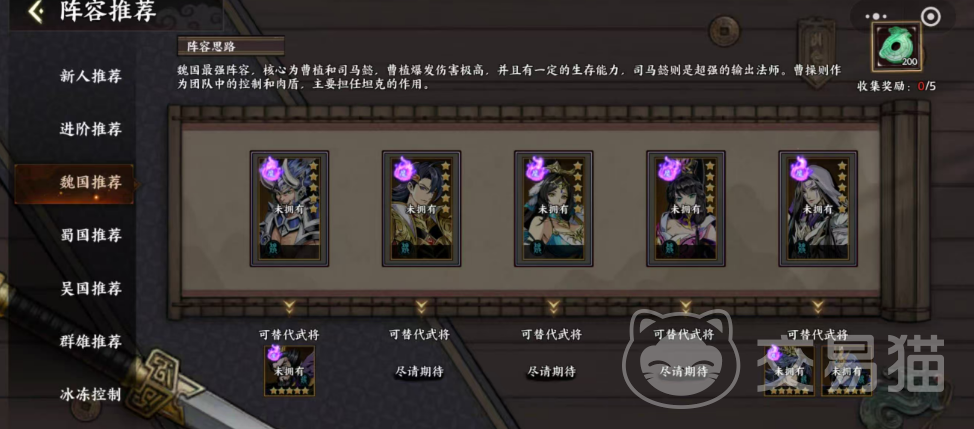 第三套为「魏国魔系专精型」阵容:魔典韦、魔曹植、魔甄宓、魔张春华、魔司马懿。该体系严格限定魏国阵营及“魔”前缀武将,羁绊加成与属性克制高度统一。魔典韦为唯一前排坦位,其受击反伤与嘲讽稳定性优于常规肉盾;魔司马懿与魔曹植构成双核驱动——曹植提供高额法术爆发与自身生存增益,间接提升司马懿技能释放频率;司马懿则以持续多段法伤与沉默控制为核心,配合魔甄宓的群体减疗与魔张春华的眩晕链,形成闭环控场体系。替补方案有限:典韦可由曹操替代(需确保其具备高防御与嘲讽覆盖率),司马懿亦可替换为郭嘉或贾诩(但会损失部分魔系专属加成)。该阵容强调技能衔接节奏与怒气管理,适合已掌握基础战斗机制的进阶玩家。