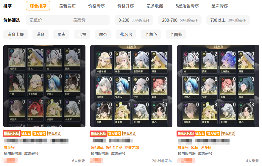 其次,交易猫这个平台不仅提供的明朝账号非常丰富,各个价位都有,而且根据大家的需求情况进行了检索设置,小伙伴们大可以根据自己喜欢的角色进行筛选,快速找到符合自己要求的账号。