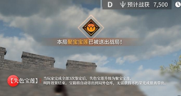 拾取失色宝莲后,系统将为所属小队专属刷新三座鉴宝台,其位置每局随机生成,但始终位于安全区范围内。占领任一鉴宝台时将触发“叫阵”提示,向全服广播当前鉴定进度。完成全部三次鉴定操作后,失色宝莲将升格为“聚宝宝莲”,该奖励将直接发放至玩家局外仓库,即使当局战斗失败亦不会损毁。在共斗诛神模式中,击败首领后将按固定概率直接掉落聚宝宝莲。