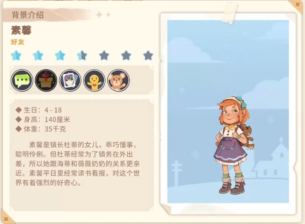 特别提醒:素馨的生日为每年4月18日。当日赠送任意有效礼物,均可触发好感度翻倍加成。这一机制为玩家提供了高效提升亲密度的窗口期,务必提前准备。此外,与素馨保持良好互动,不仅有助于解锁其个人支线,也将间接推动主线中与镇长杜蒂相关的任务链进展,对整体剧情推进具备实质性影响。