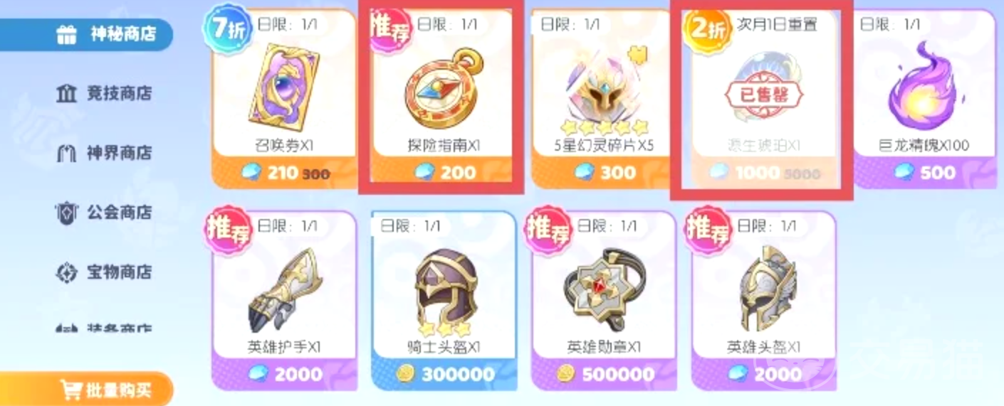 【神秘商店】为日限刷新机制,核心推荐固定获取探险指南(前期快速解锁地图与事件)与源生琥珀。前者在角色成型后可逐步减少投入;后者因全渠道产出极少,建议每月满额兑换,用于关键幻灵升星或突破节点。