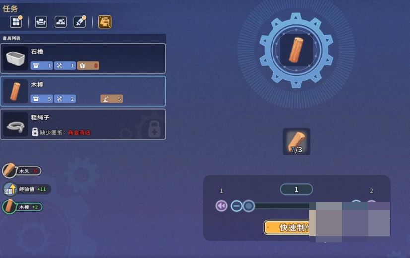 材料获取路径分为四类:采集、冶炼、加工与日常储备。砖石可通过敲击岩石或使用熔炉煅烧石料获得;木棒来自砍伐林区树木;植物纤维需在草地、木缘等地反复采集,建议随身携带采集工具,边探索边积累;铜锭与铜棒须先于废料堆中拾取含铜矿渣,再送入冶炼炉提纯;铁块、电线、齿轮等通用配件,主要依靠每日资源点巡查、任务奖励及仓库长期囤积逐步凑齐。