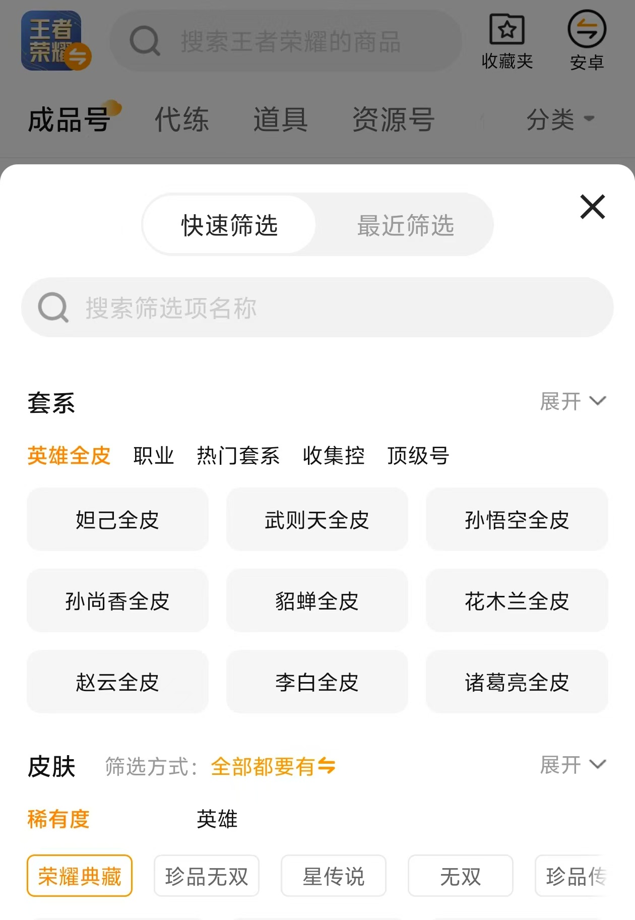 无论是新手入坑还是老玩家换号上分,交易猫都是你不容错过的交易平台。玩家不用再担心在积分夺宝中丢下去200抽还拿不到荣耀水晶的情况,下载交易猫,拥有10几款荣耀典藏皮肤的成品号任你挑选,安卓手机点击上方链接快速下载APP,苹果端网页即可进入交易猫官网来买号。