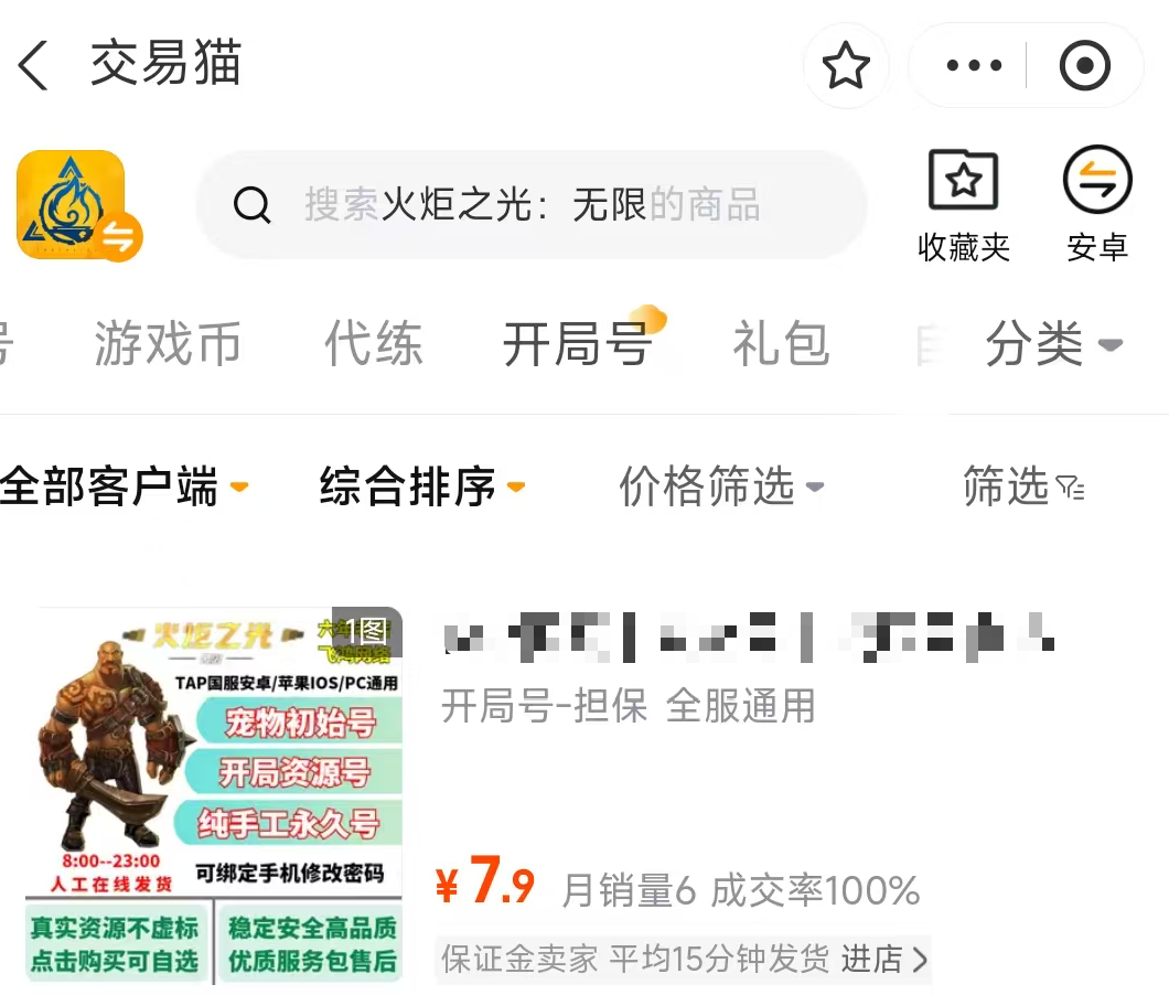 火炬之光无限多数账号的内容是完全不一样的,毕竟每个职业所要求的毕业练度以及装备都存在巨大的差别,很多玩家在购买的时候会担心账号的内容是否属实,这个在交易猫是不需要担心的,因为该平台提供的账号都经过严格的审核,一旦账号出现虚假问题,平台都会进行上架的,而且还会赠送一个安心购的服务权益,如果后续账号出现问题的话,官方都会给予赔付,服务态度是很优秀的,而且平台实现全品类游戏全覆盖,涵盖6000余款各类游戏,100万余件商品持续在线上架,累计为超7000万玩家提供优质服务,想要使用交易猫平台,安卓用户能通过上方按钮下载,而ios用户则可以直接到交易猫官网使用哦。