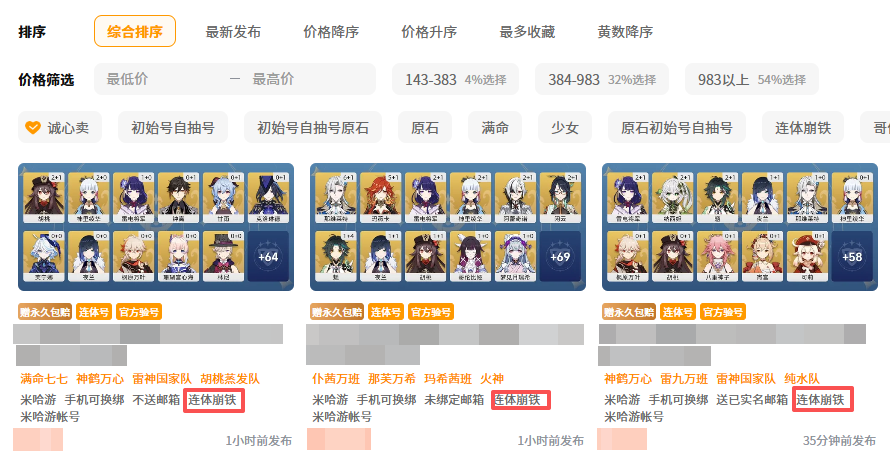 建议小伙伴们在卖连体号的时候,可以将价值比较高的账号作为主号售卖,其他账号可以作为彩头,因为很多玩家如果喜欢某公司的一款游戏产品,那么很大概率会喜欢公司的其他一些产品,比如喜欢原神的用户,就会因为其画风而喜欢崩铁。