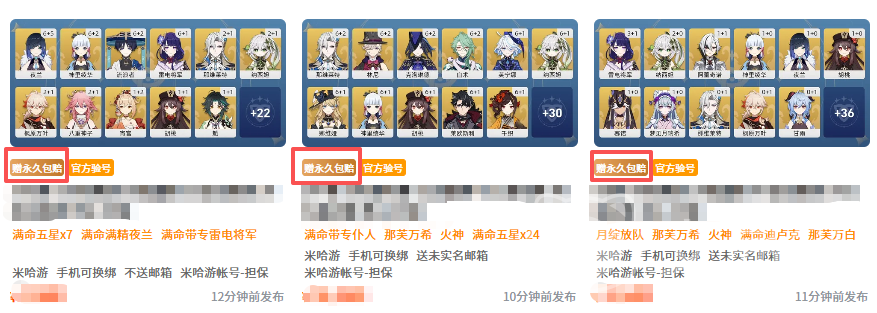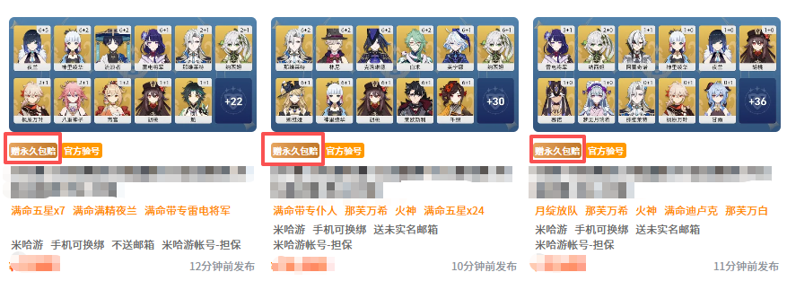 而且平台还给大家提供了永久包赔服务,因此大家如果有的小伙伴有交易的需求,那么可以优先选择拥有包赔服务的账号,不过目前平台上的账号基本上是都含盖了永久包赔服务,相关的账号信息下会有标签展示。