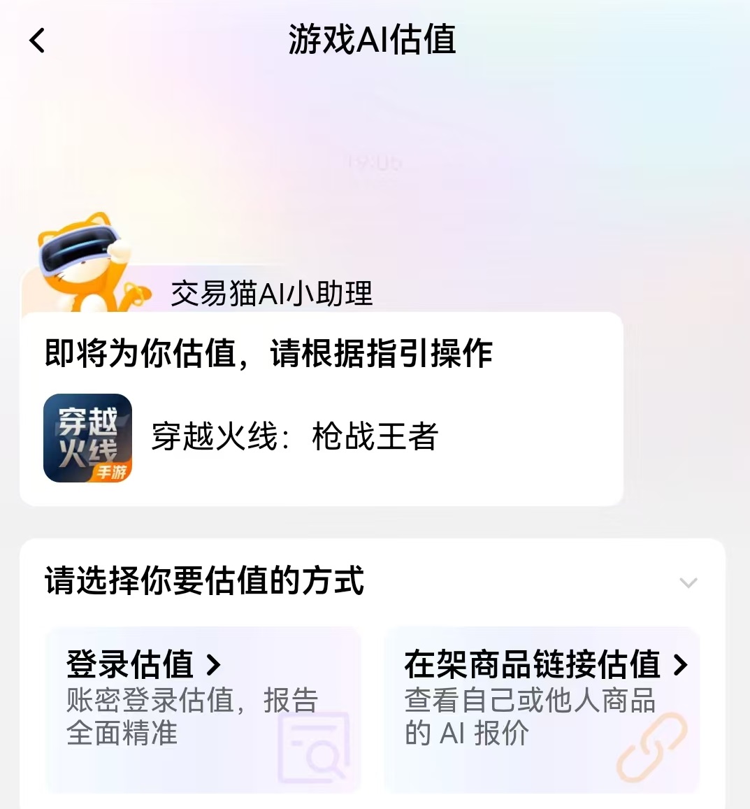 在cf中最有价值的部分就是传说武器,王者武器,炫金武器以及传说角色等,在交易过程中都需要折算成价格。推荐交易猫给大家,除了上面的优势之外,还在其他很多方面都展现出了自身的独特性。想要使用交易猫,只需要通过上面的链接就能下载安卓APP,使用很方便。iOS系统用户目前需要去交易猫官网操作。交易猫拥有估号功能,点击免费估值,从中找到穿越火线后就可以进行游戏账号的估值了。
