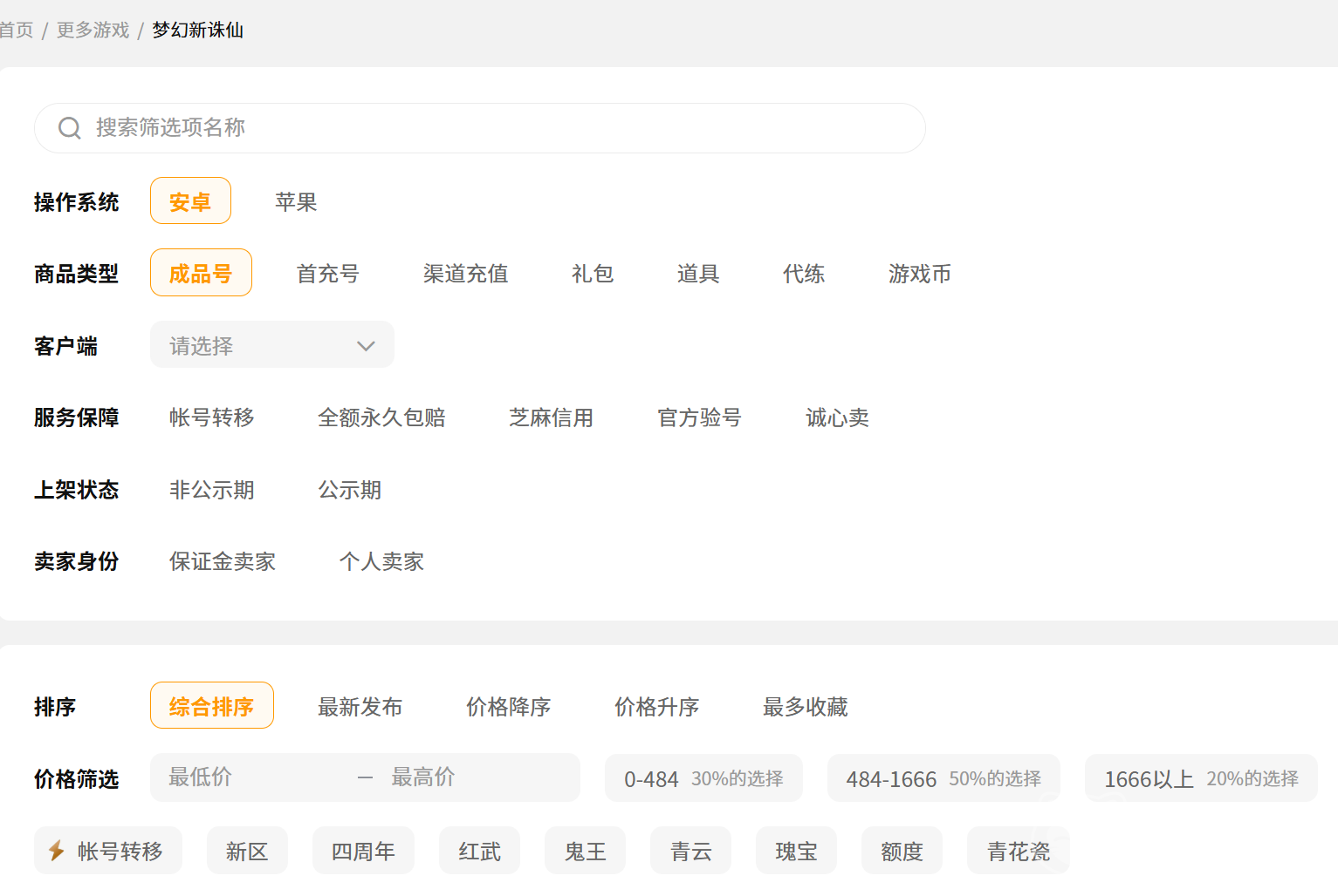 交易猫的梦幻新诛仙交易专区里的游戏账号丰富多样,涵盖了游戏的各个服务器,不管是热门的还是小众冷门的,都能找到对应的账号。角色类型分类的账号也应有尽有,还有等级跨度也是很广泛的,从初入游戏的低等级账号,到经历了长时间培养等级高实力强的高级账号。不管你是想要新手玩家,还是想要重新体验游戏的老玩家,都能够在这里找到适合自己的梦幻新诛仙账号。