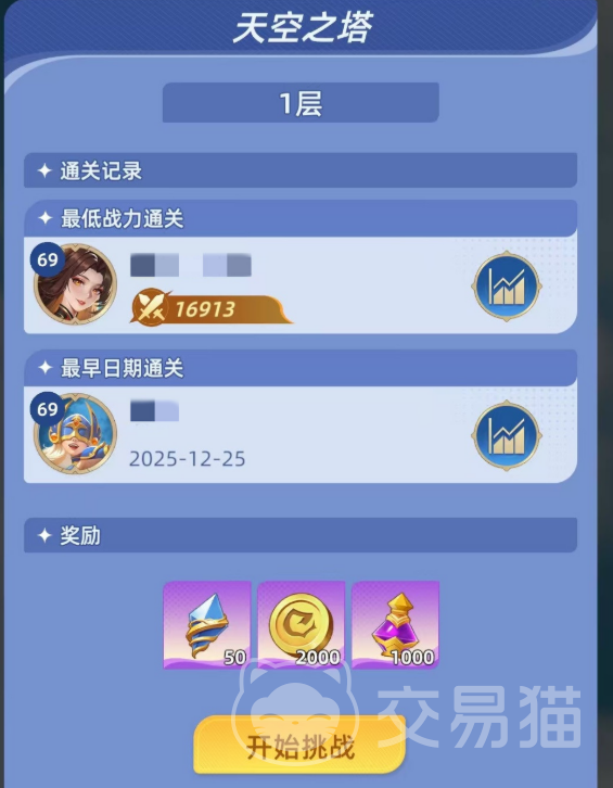 天空之塔共设2500层,采用单向递进式闯关设计。每成功通关一层,即可即时领取该层专属奖励,包括角色进阶石、金币及经验药水等高频刚需培养材料。需特别注意:已通关楼层不可重复挑战,因此整体收益由两部分构成——一是逐层推进所获得的即时通关奖励;二是依据每日0点结算时,玩家历史达到的最高层数发放的固定日常奖励。