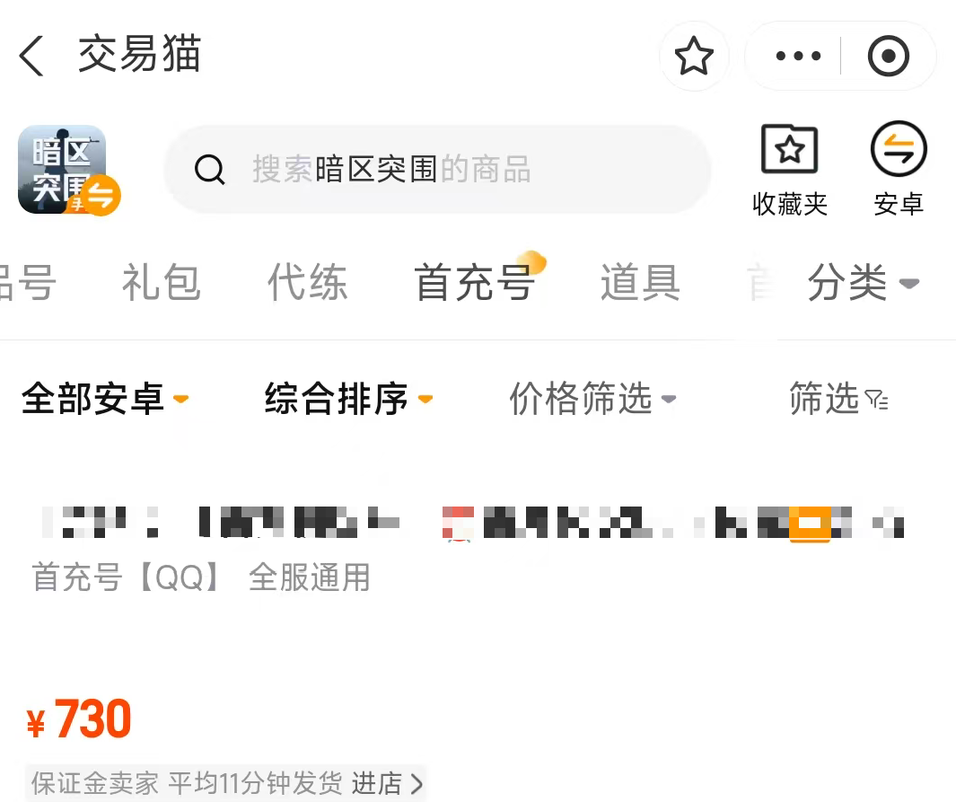 暗区10m这类账号包含了大量的科恩币,可供玩家们购买大量的物资以及资源,定价方面不算特别贵,毕竟账号内没有特殊的服装以及特效,价格大致是在69-500元浮动,想要购买放心的话,推荐到交易猫平台,该平台提供的暗区账号数量是特别多的,同时后续还有专业的客服进行二次查验,保证内容的真实可靠,同时还提供安心购的服务,只要账号后续出现任何问题的话,官方都会进行全额赔付,同时平台实现全品类游戏全覆盖,囊括6000+款热门与小众作品,100万+件商品稳定在架供给,累计为超7000万+玩家提供优质服务,想要使用的话,推荐安卓用户通过上方按钮下载,而ios用户则直接建议到交易猫官网使用哦。