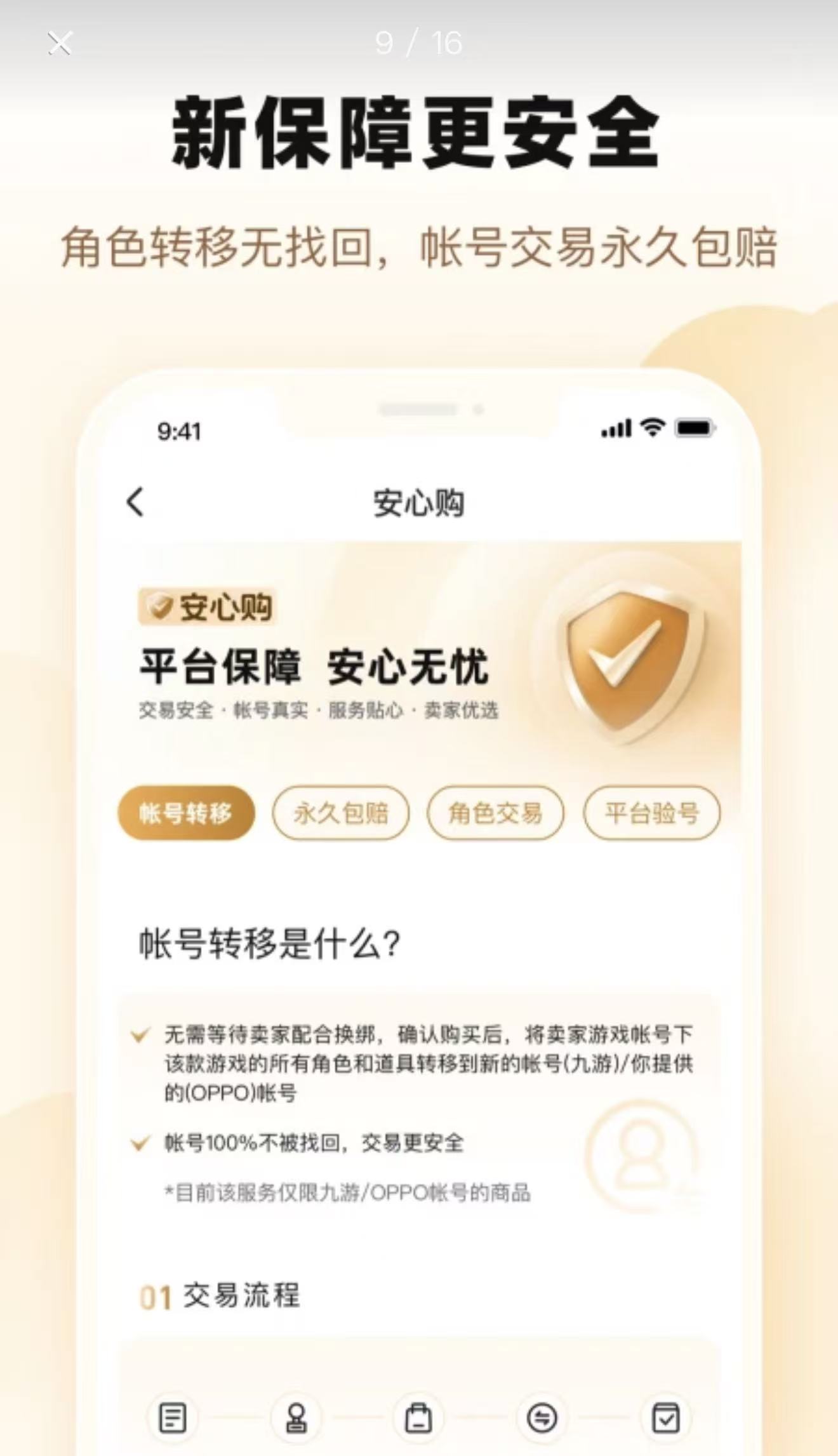 不仅在买前很贴心,购买过程中绝对的安心也是很多人选择它的原因。交易猫的安心购服务中,o渠,米渠和九游渠都支持账号转移,这样就不用担心账号会被找回了,因为其中的数据内容已经全部转移到了大家的游戏账号里。