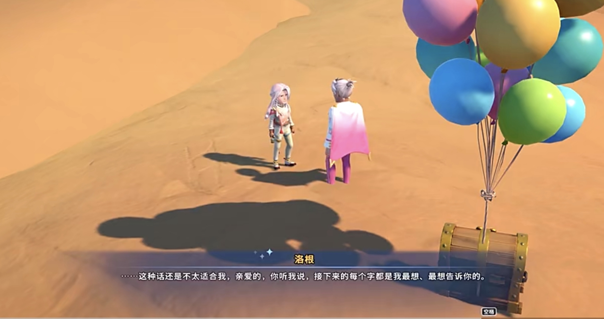 随后剧情进入高潮段落:装有戒指的宝匣由氦气球牵引升空,但受沙漠突发侧风影响发生偏移。此时洛根将迅速拔枪射击气球连接绳,在精准命中瞬间确保宝匣平稳坠落至玩家正前方一米范围内。紧接着他单膝触地,以标准绅士礼节完成正式告白,全程伴有环境光效变化与专属BGM切入。若玩家选择接受,则双方关系升级为“法定伴侣”,解锁双人协同技能、共用住宅权限及专属日常事件链。