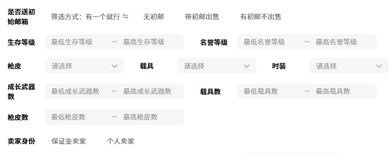 该平台不仅账号资源丰富,而且给大家提供了快速筛选的功能,小伙伴们可以自由根据自己想要的枪皮以及载具和时装进行筛选,快速定位到符合自己要求的账号,节省了很多大家找账号的时间。