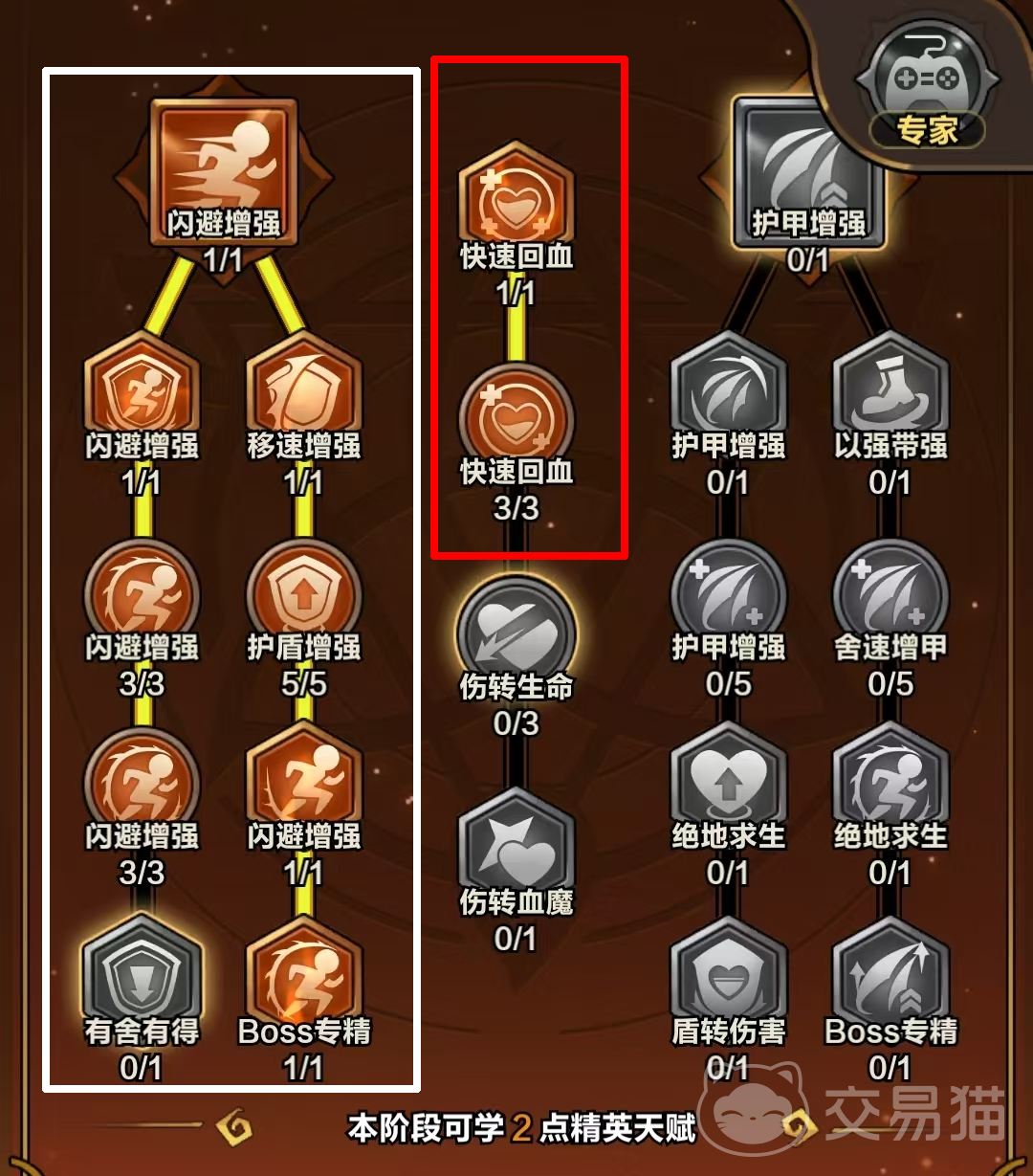 【专家操作】为独立激活型天赋,不占用常规天赋树点数。启用后获得最终伤害提升25%,同时承受最终伤害增加50%。该天赋不具备成长过渡性,建议在角色成型、操作熟练度稳定后解锁;冲榜竞争阶段属于必选配置,但新手期应暂缓投入。