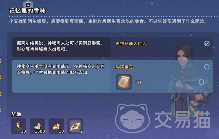 值得注意的是,“记忆里的香味”这一主线任务明确要求玩家制备豆瓣酱,而蚕豆作为核心原料,其种子无法通过耕种解锁、地图拾取或图鉴兑换等方式获取。唯一稳定途径即为向神秘商人购入。同时,该商人还会无偿提供豆瓣酱的完整配方,无需额外学习或触发隐藏条件,大幅降低制作门槛。