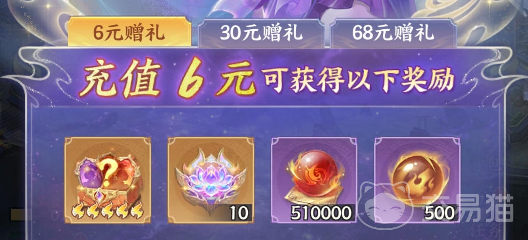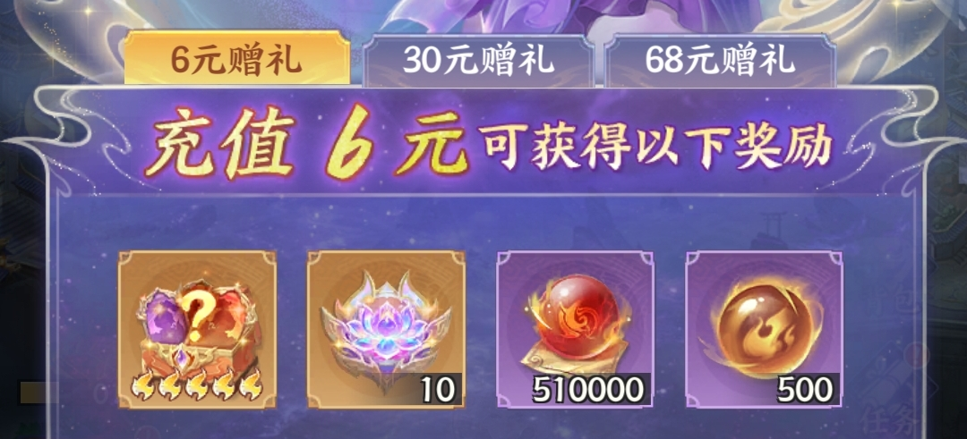 按当日累计充值金额分档返还,含6元、30元、68元三档,资源匹配度高,适合日常小额补给。