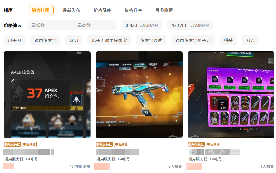 apex账号交易平台,如果大家不知道什么比较好,不妨试试小编带来的这个,不仅资源多,而且大家在照账号的过程中还可以合理的运用平台的筛选功能,快速找到符合自己要求的账号,能节省搜索时间,尽快体验。