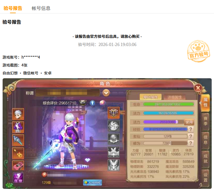 值得一提的是,平台有购验号服务,小伙伴们的账号不需要自己辛苦贴资源,可以直接让平台进行验号,展示具体的号内资源情况。