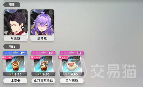 经营面板支持配置专属店员角色。每位角色具备差异化经营专长——例如提升基础售价系数、增强顾客停留时长、提高复购率或加速原料转化效率等。相关技能可通过消耗经营经验进行等级强化,以持续优化收益模型。面板底部为商品上架区,支持动态调整销售品类。