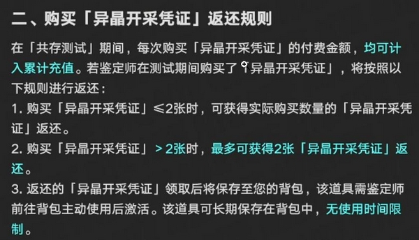 从长期养成维度评估,通行证所提供的环石总量可观,若坚持每日登录领取,30天内即可累积接近30次标准抽卡次数(以单次抽卡消耗100环石计),对角色池深度拓展和队伍成型效率具有实质性提升作用。此外,参与过前期测试的玩家若在测试期间购买通行证,公测开启后将按规则返还:购买数量≤2张时,全额返还两种资源(异晶与环石);超出2张部分,最多仅返还前2张对应的权益。