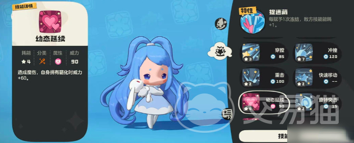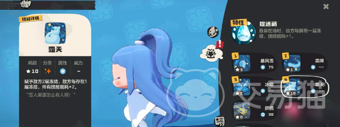 雪影娃娃的核心特性为【捉迷藏】:每当成功施加一层冻结效果,敌方下回合所有技能的释放次数+1(即技能可额外释放一次)。该机制强化了其战略牵制价值。推荐携带的技能组合包括“霜天”、“穿堂”、“幼态延续”与“柔弱”。其中,“霜天”可直接赋予目标两层冻结,随技能等级提升最多叠加至四层;每存在一层冻结,敌方所有技能消耗值+2,从而大幅延缓其行动频率,实现高效控场与节奏压制。