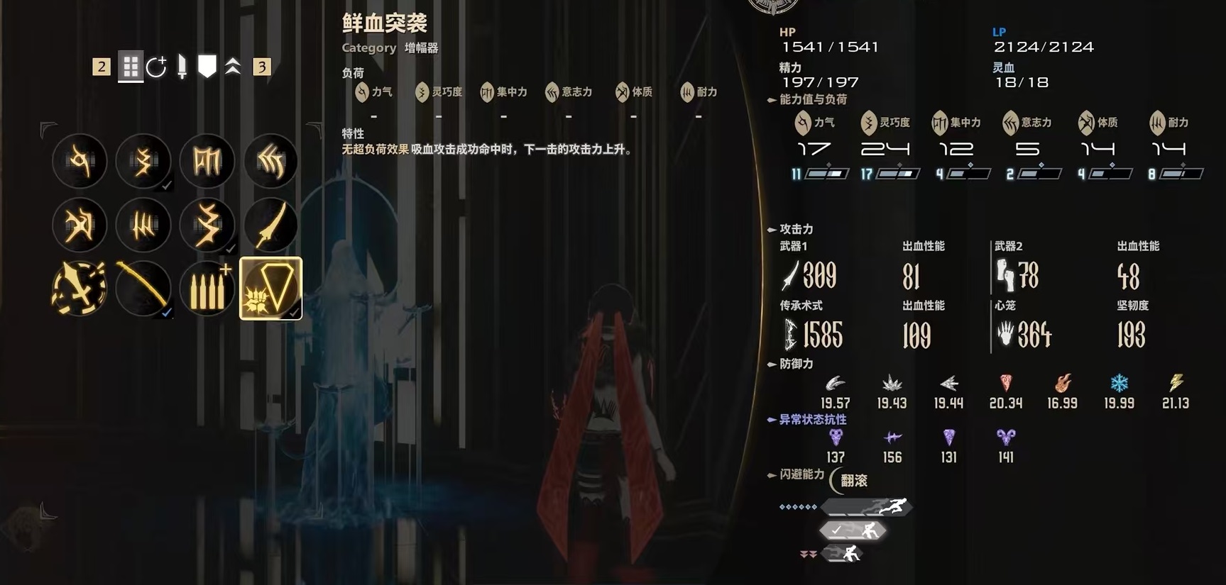战斗系统以“灵血”为核心循环资源:通过吸血类攻击从敌人处获取,用于施放术式技能。其中,伙伴血族乔茜具备普攻回血特性,但需注意——当灵血已满时其普攻将转为扣除生命值,因此对灵血量的动态把控至关重要。在心笼选择上,推荐新手优先选用巨魔型心笼,其前摇短、泛用性强;追求高爆发可切换至猎犬型,具备更高伤害与韧性,利于处决阶段压制;若倾向弹反打法,则收割者型心笼拥有更宽泛的判定窗口,容错率更高。