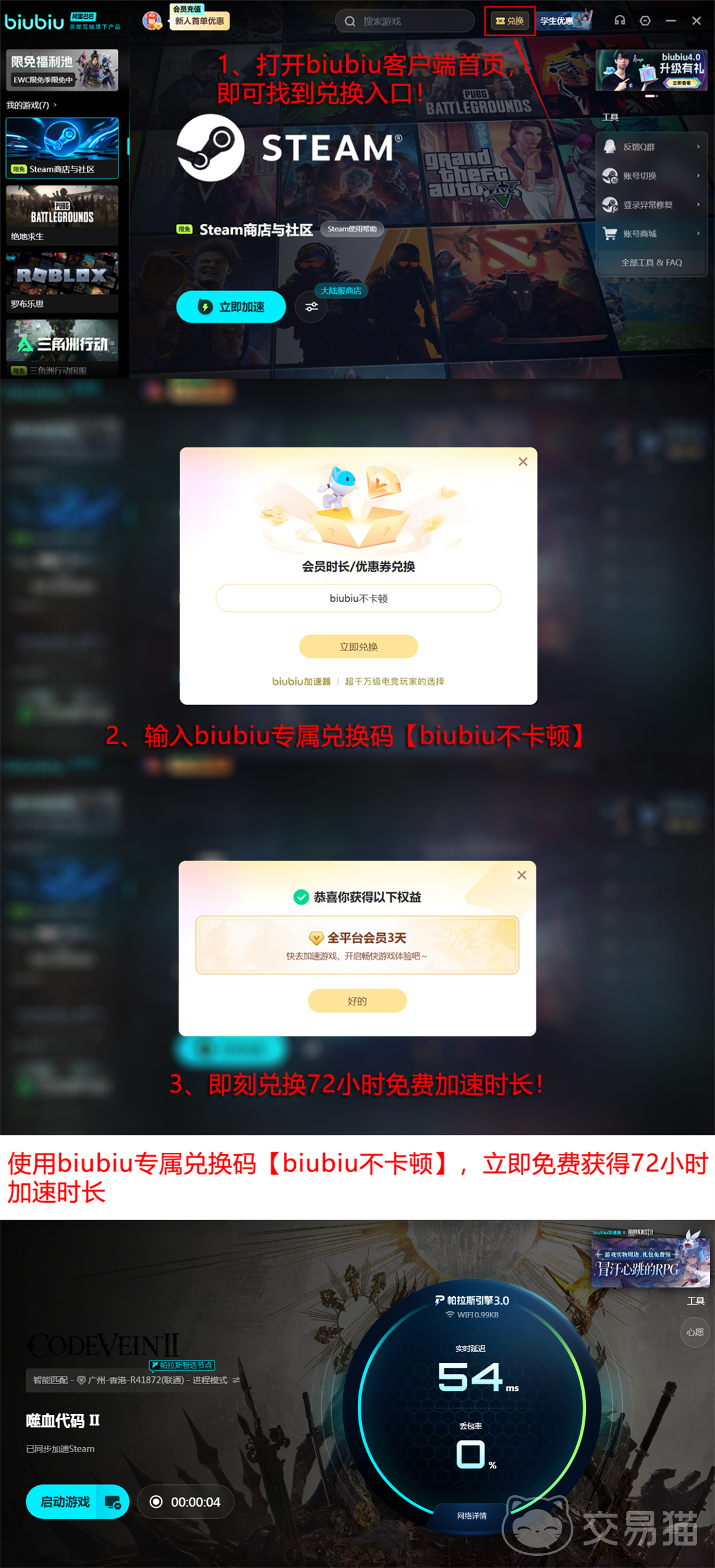 为保障网络环境稳定,建议使用专业游戏加速工具。该加速器采用自主研发帕拉斯3.0引擎,专为大型动作RPG优化设计,具备低延迟、高稳定性特点,支持电竞级专线接入。新用户注册后可直接享受24小时免费加速服务;登录后输入兑换码【biubiu不卡顿】,还可额外获得72小时加速时长,总计新人可用时长达96小时。