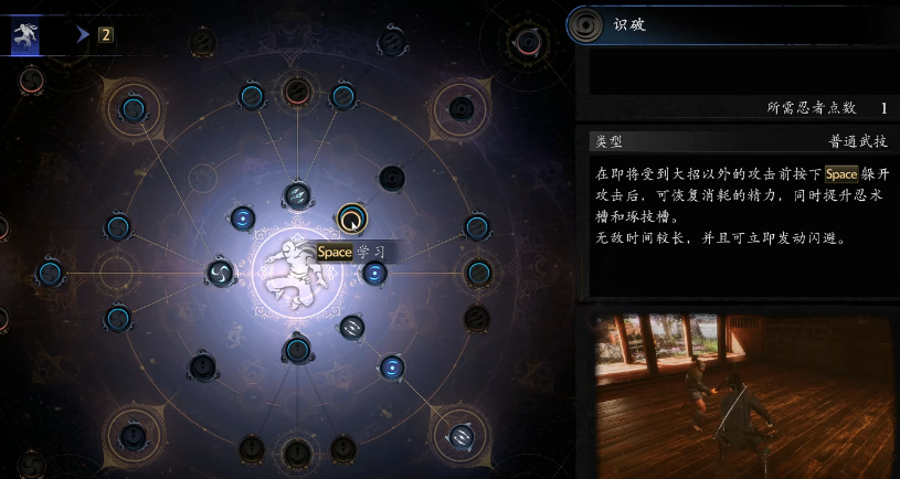 角色成长以技能解锁为核心驱动。所有技能需通过剧情任务、宝箱拾取或击败特定敌人获取的技能书/指南书激活。忍者流派必须优先习得「识破」技能——该技能不仅提供精准帧判定闪避,成功触发后还将叠加攻击力提升与硬直削减效果,是应对高难度战斗的关键机制。其余技能槽位可依实战需求侧重强化防御韧性(如格挡耐力增幅)或输出循环(如连击伤害加成)。