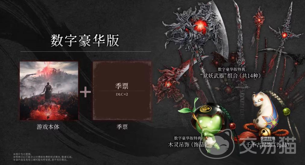 标准版为纯游戏本体,国区定价348元;豪华版售价546元,在标准版基础上额外包含季票、狱妖武器组合(共14种)、木灵吊饰、千千古吊饰四项专属内容。