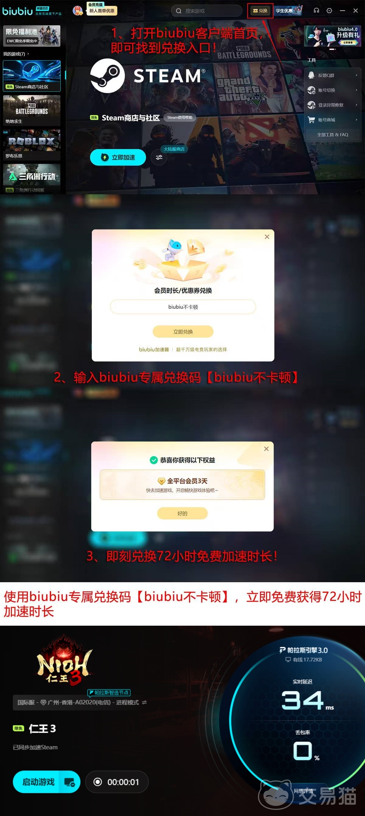 目前提供面向新用户的免费体验通道:完成首次注册即可获得24小时全游戏加速权限;若在激活过程中确认“不卡顿”状态,还可额外领取72小时高级加速服务,累计享4天完整使用权。