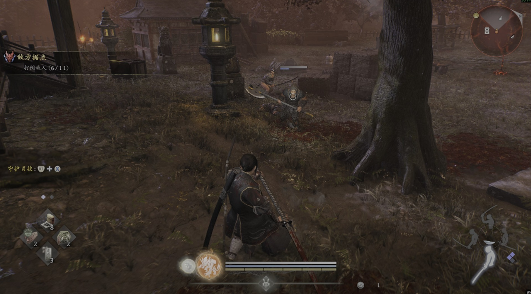 武器选择上,新手阶段建议优先选用长枪或双刀类平衡型装备,兼顾攻击范围与出招速度。若已掌握“冬月复读流”等进阶构筑,可侧重轻攻击起手的流派配置,提升连段容错率。实战中建议携带烟雾弹或眩晕符咒,在山狗蓄力释放大招(如腾空扑咬或旋风斩)前进行精准打断,控场效果显著。此外,通过神社制作的阴阳术道具,如缚灵符或迟缓阵,亦能强化战场控制能力。