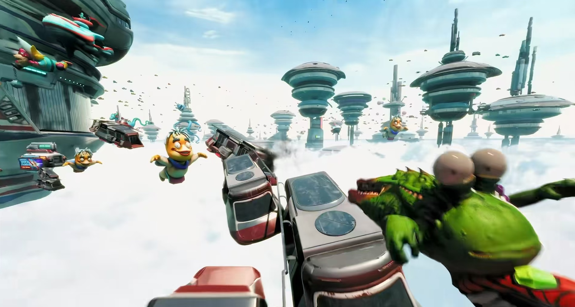 本作在核心玩法上进行了多项创新:传统冲刺机制被全新滑板移动系统取代,玩家可借助地形完成腾跃、滑行与空中转向,并将此类机动操作深度融入解谜与战斗环节,带来类FPS滑板游戏的独特节奏感。武器系统同样富有个性——外星枪械具备独立AI人格,支持多语音风格切换;武器切换时触发智能交互反馈,强化操作反馈与角色代入感。整体玩法融合高速射击、非线性开放探索与剧情驱动任务,场景横跨外星动物园、宇宙游轮等多元异星空间,结合赏金狩猎机制与贯穿始终的黑色幽默叙事,构建出层次丰富的游戏世界。
