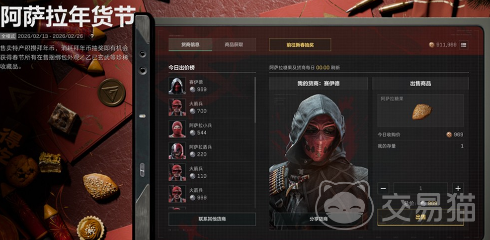 第四项活动“阿萨拉年货节”以每日任务为核心驱动。玩家每日完成指定游戏行为(如击杀、爆头、拾取等)即可获得阿萨拉糖果,该道具支持兑换为拜年币。拜年币可用于参与概率型抽奖,奖池包含传说级与史诗级武器外观,以及乙巳玄武等红色稀有收藏品。活动机制强调长期参与,但最终产出具有随机性。