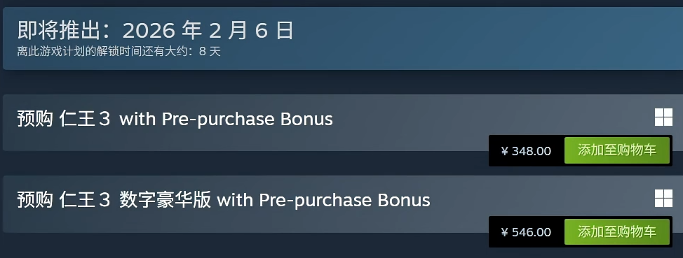 根据Steam当前页面显示,《仁王3》标准版定价为348元,豪华版则为546元。由于游戏处于首发阶段,平台已同步开启限时优惠活动:标准版折后价为283.97元,豪华版折后价为445.54元。建议玩家结合自身需求与预算,理性选择对应版本。