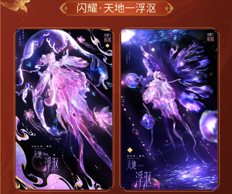 另两套新装“闪耀·天地一浮沤”与“闪耀·朝暮尽千年”,搭配专属背饰“羽化梦川”,可实现泡泡形态与翅膀形态的即时切换。皮肤材质采用半透明渲染技术,支持全身体表幻化为通透质感;光学表现基于真实薄膜干涉原理建模,使泡泡与羽翼在不同视角及光照条件下呈现动态虹彩折射效果,色彩随动作与环境实时变化。