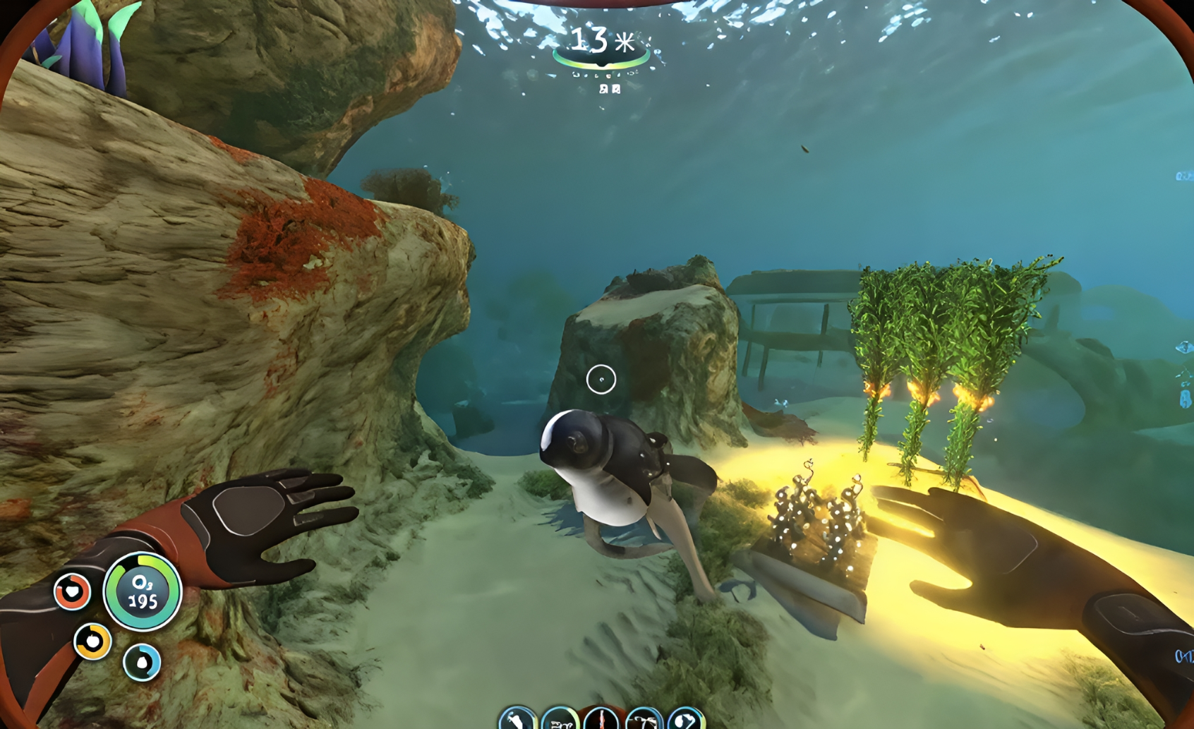 初始阶段推荐以逃生舱为圆心,半径约100米范围内展开探索。该区域富含小鱼、海藻、盐块等基础生存物资,可高效补充食物与饮用水,且遭遇掠食性生物的概率较低。虽地形起伏明显、矿物密度有限,但足以支撑前中期发展所需。待载具性能提升、防护装备完善后,再逐步向深海拓展,采集钛、铅、铀等稀有矿物,以满足月池控制台升级及大型基地扩建的材料需求。