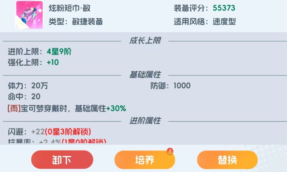 属性层面,超级甲贺忍蛙延续神属性与雨属性双重设定,因此可完整享受神系阵容加成与雨系阵容加成。装备继承方面,无需重新配置——直接沿用呱呱泡蛙阶段已穿戴的套装即可。后续养成建议按优先级推进:首先进阶至满品阶;其次完成努力值升阶;再提升招式精通等级;最后集中资源进行MEGA进化等级突破,以最大化战力收益。