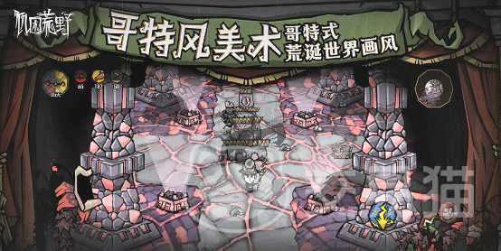 游戏构建于哥特漫画风格的开放世界之中,涵盖雪原、沼泽、火山、废墟等多种地貌环境。玩家需实时监控生命值与饥饿值状态,二者失衡将直接触发危险事件。采集木材、矿石、草药等基础资源,锻造工具、制作火把、搭建庇护所,是维系生存链路的关键环节。