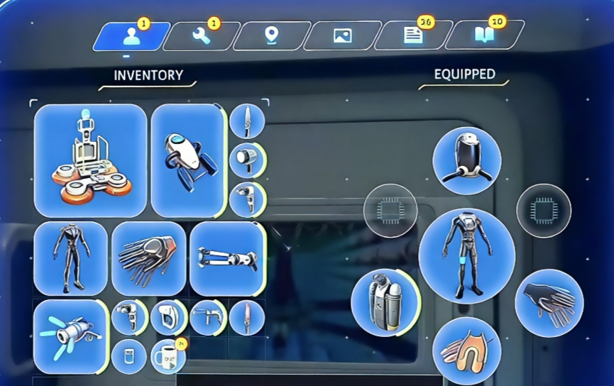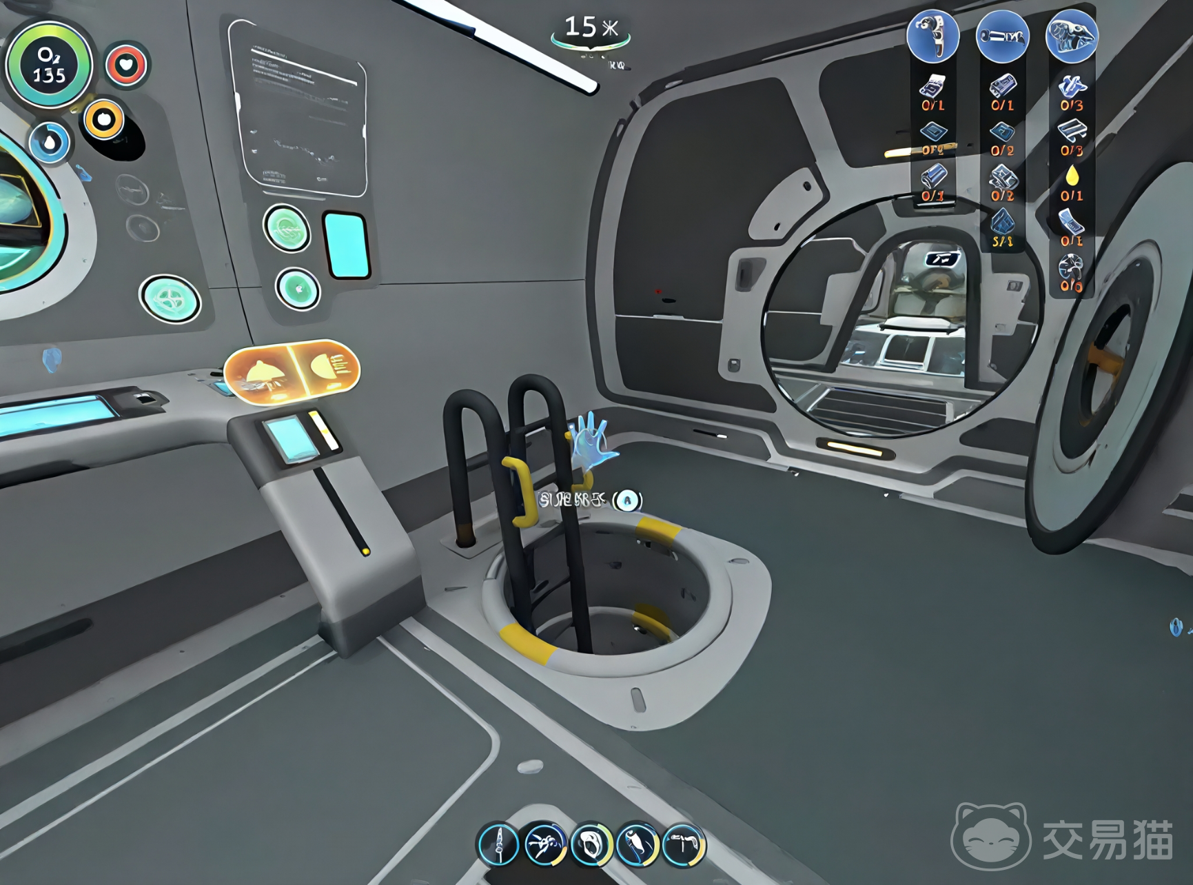 生存系统围绕氧气、饥饿、口渴、辐射四大核心指标展开。玩家必须持续管理生命体征:通过捕捞鱼类补充能量,利用海水净化装置获取饮用水,建造并升级逃生舱维持供氧,穿戴适配深度的潜水服抵御高压与辐射。同时,可制作基础工具(如刀具)、防御武器、载具(含潜水艇)及功能性建筑(如生物实验室、扫描台),支撑长期勘探与科研进度。