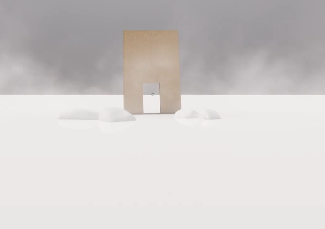 携房屋穿过前方门扉,环境骤变为纯白空间。此时自由移动直至全域转白,随即出现一条纵向延伸的新通道。沿其向上行进,当脚下地面呈现由黑白格窗组成的几何纹样时,立即纵身跃下。落地后正对一道漆黑门体,实为可拖动遮蔽板,移开后进入下一异构空间。